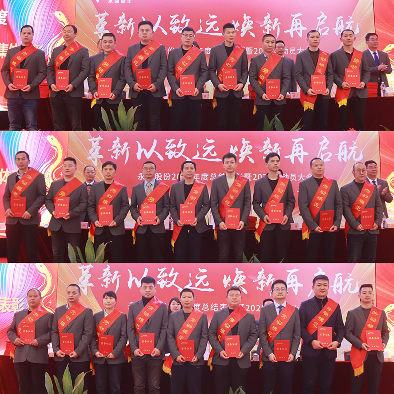 王長春副總經理宣讀《2024年度先進個人、先進集體表彰決定》。各位先進代表在平凡的工作崗位上,堅持高標準嚴要求,兢兢業業完成本職工作,用智慧和汗水奮勇打拼,為永新發展匯聚出磅礴力量。勞動模范、成品制造部黃曉峰代表受表彰的先進員工發言。